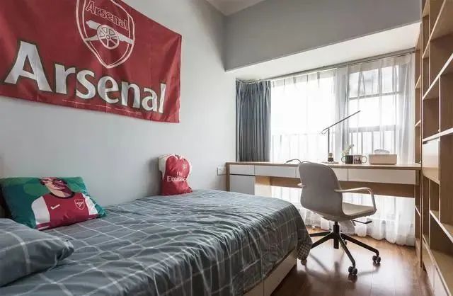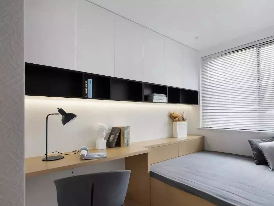 میز و کابینت کنار تختخواب:برای موقعیت هایی که یک میز در کنار تختخواب قرار می گیرد ، به سادگی یک طرح یکپارچه از میز و کابینت را اتخاذ کنید.