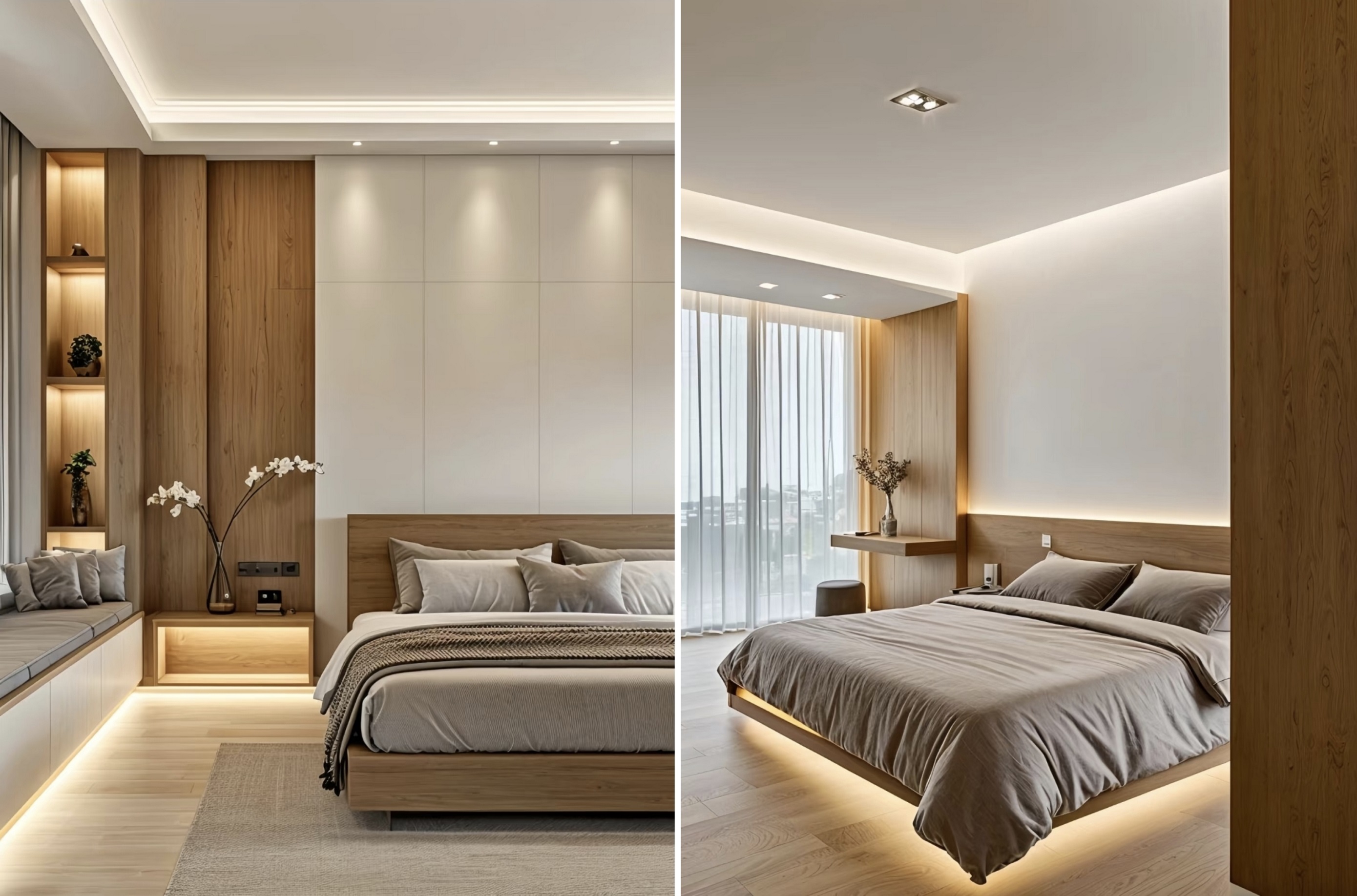 نورپردازی گرم و ظریف تنظیم شده فضا را به یک اثر هنری تبدیل می کند.