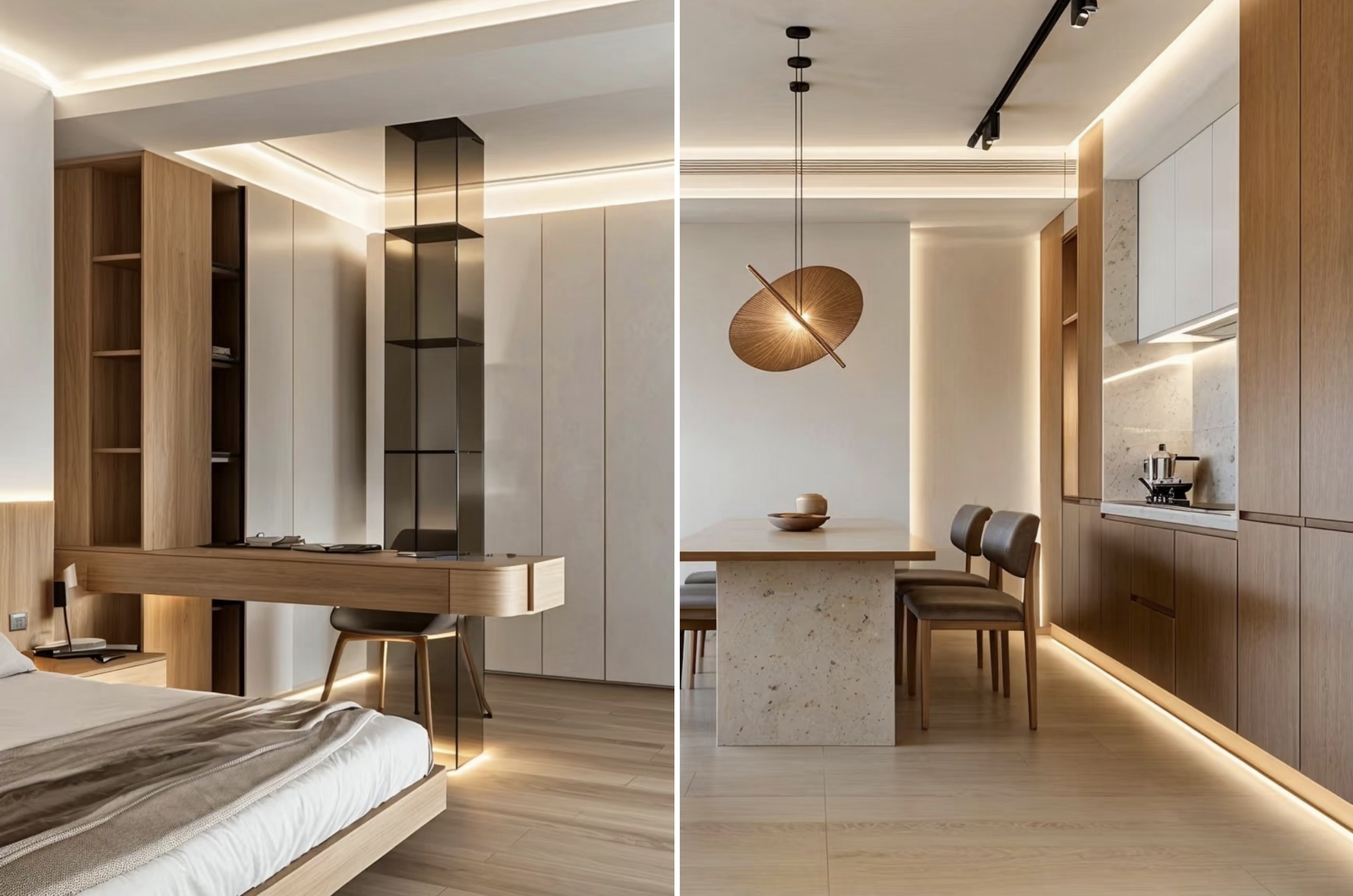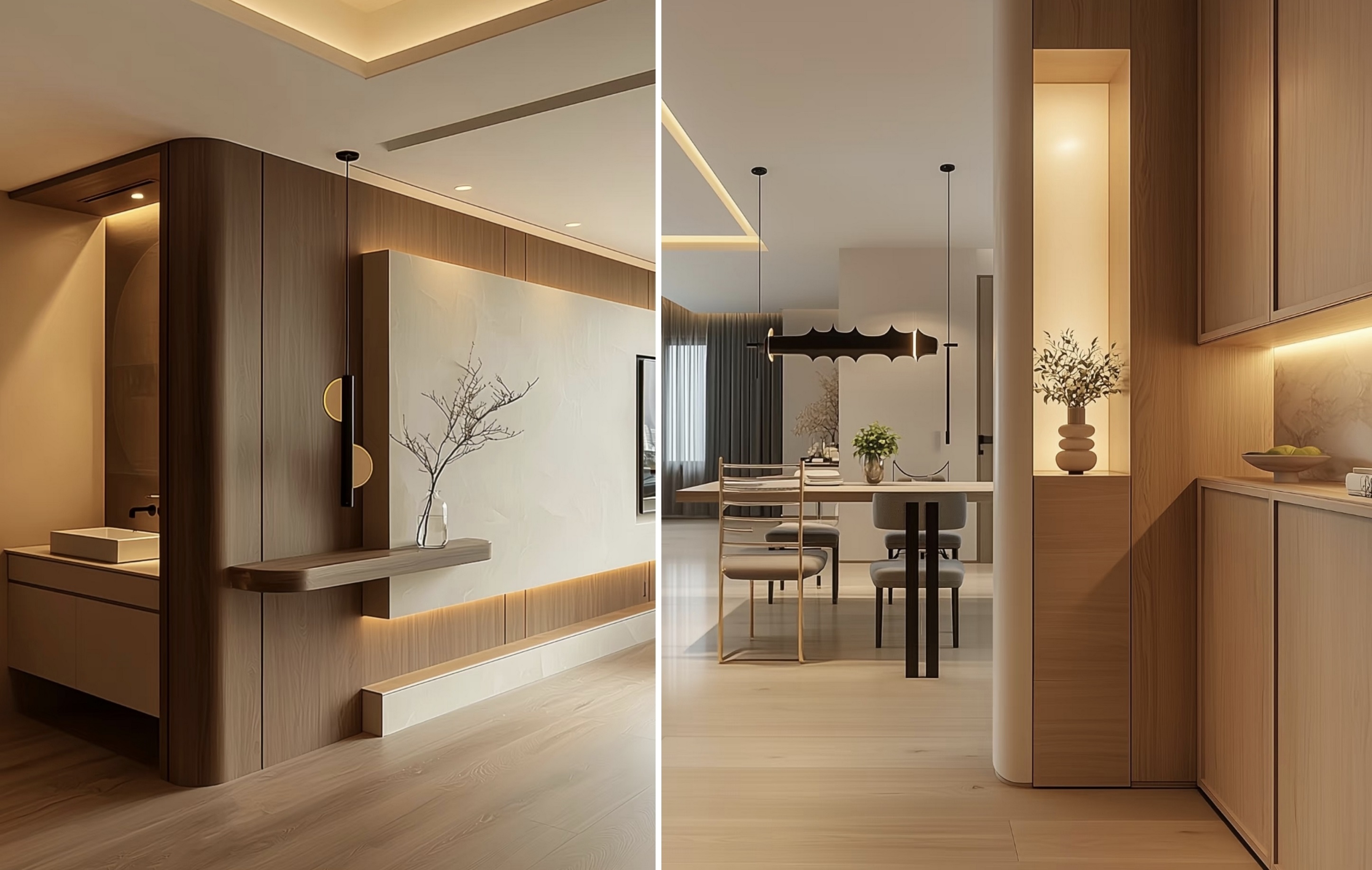 استفاده مناسب از فضای منفی لایه ها و حس اتاق تنفس را فراهم می کند.
