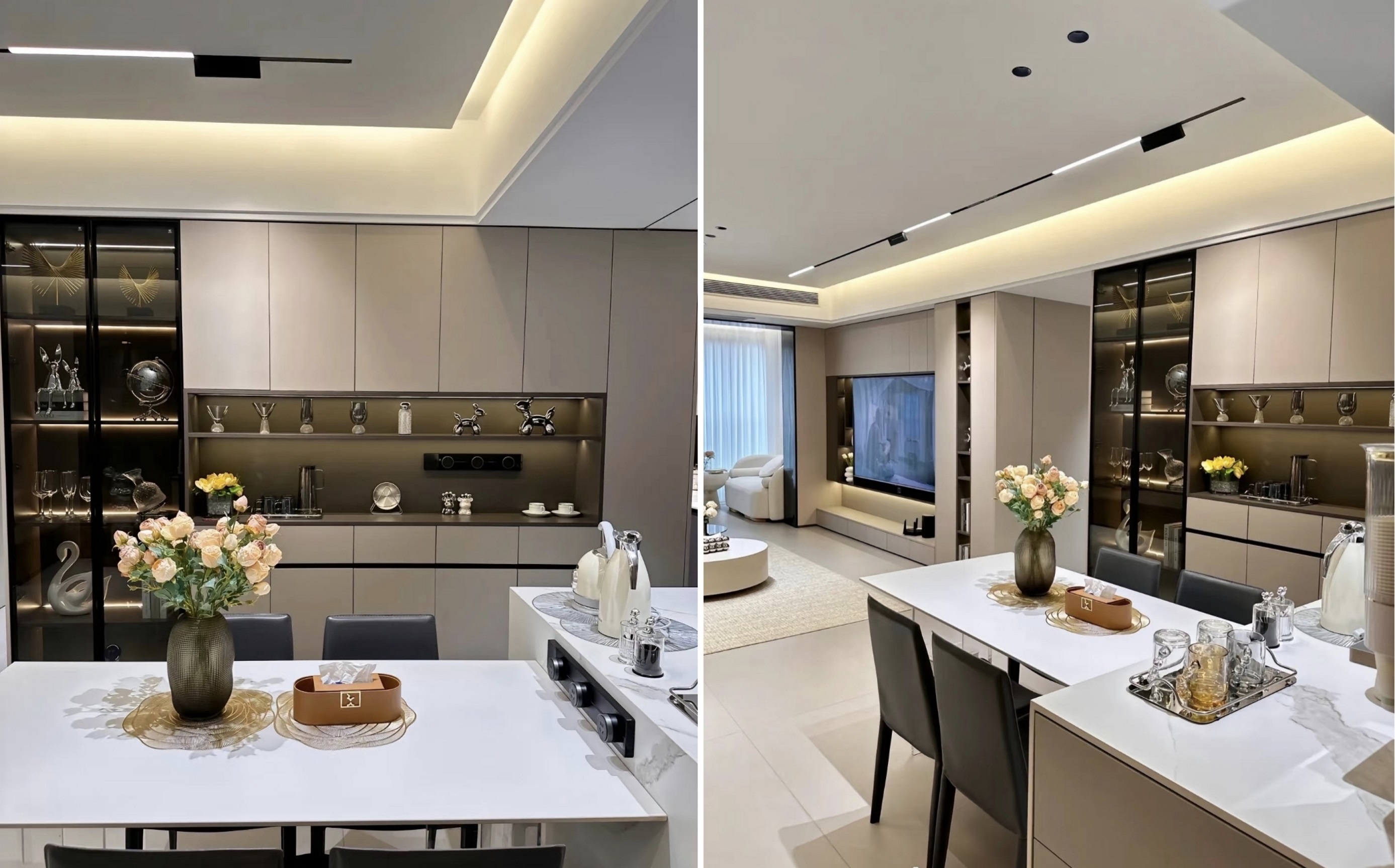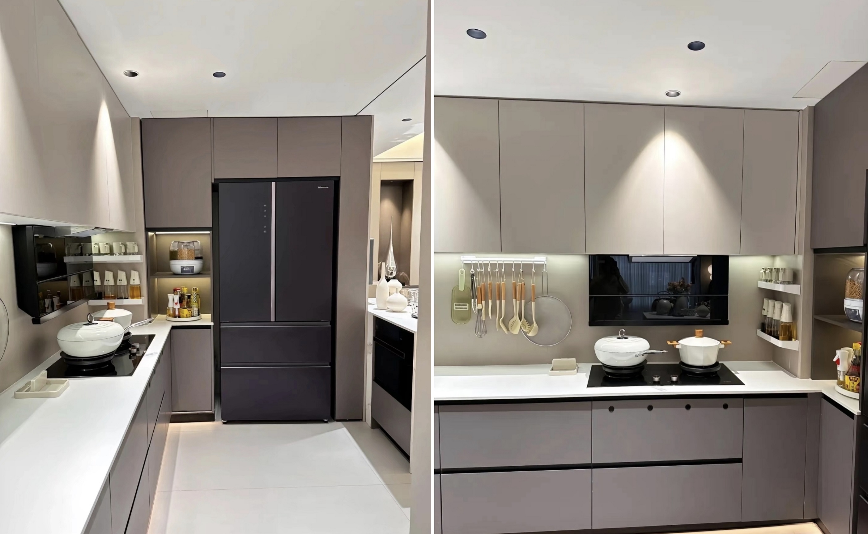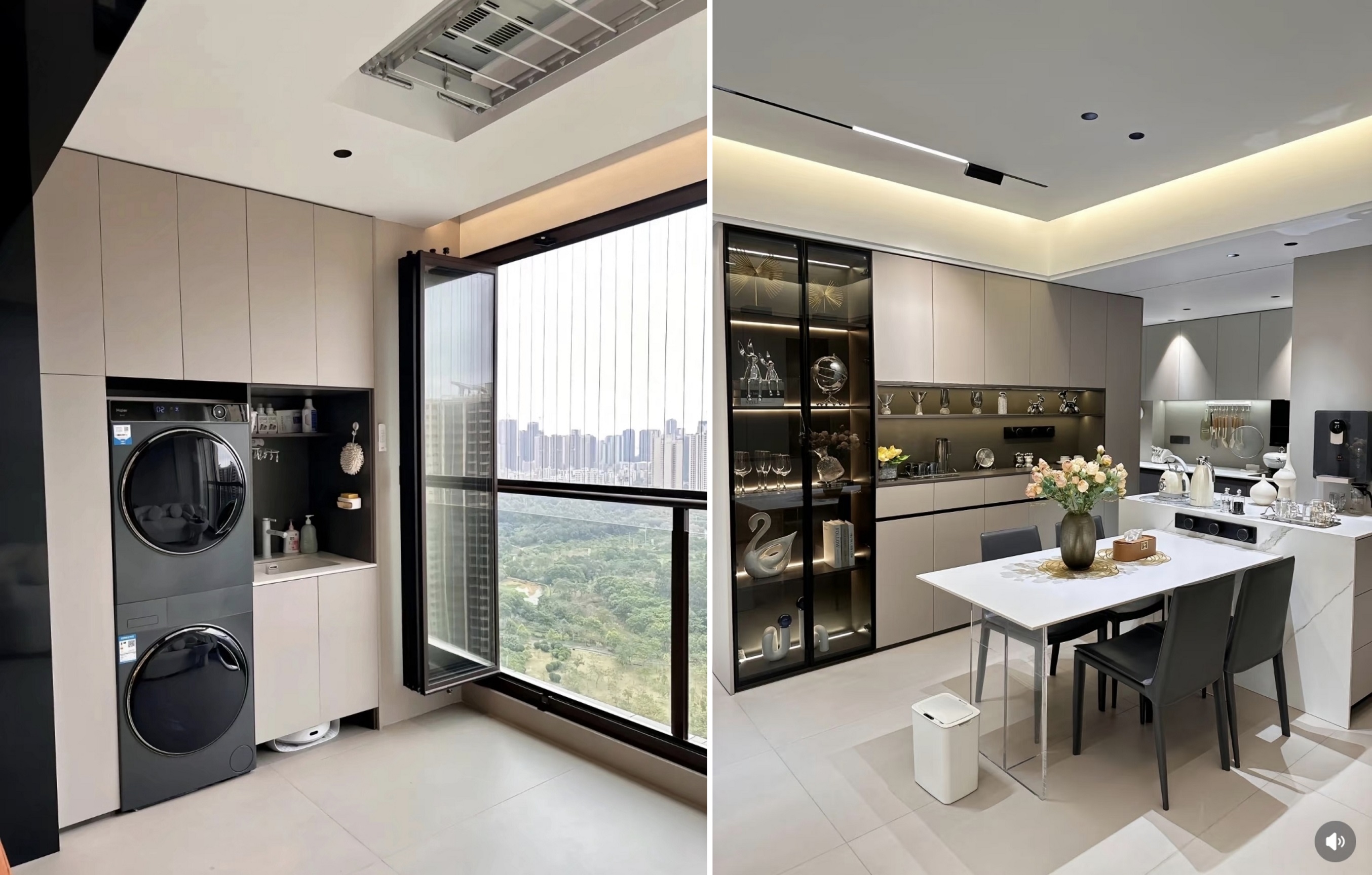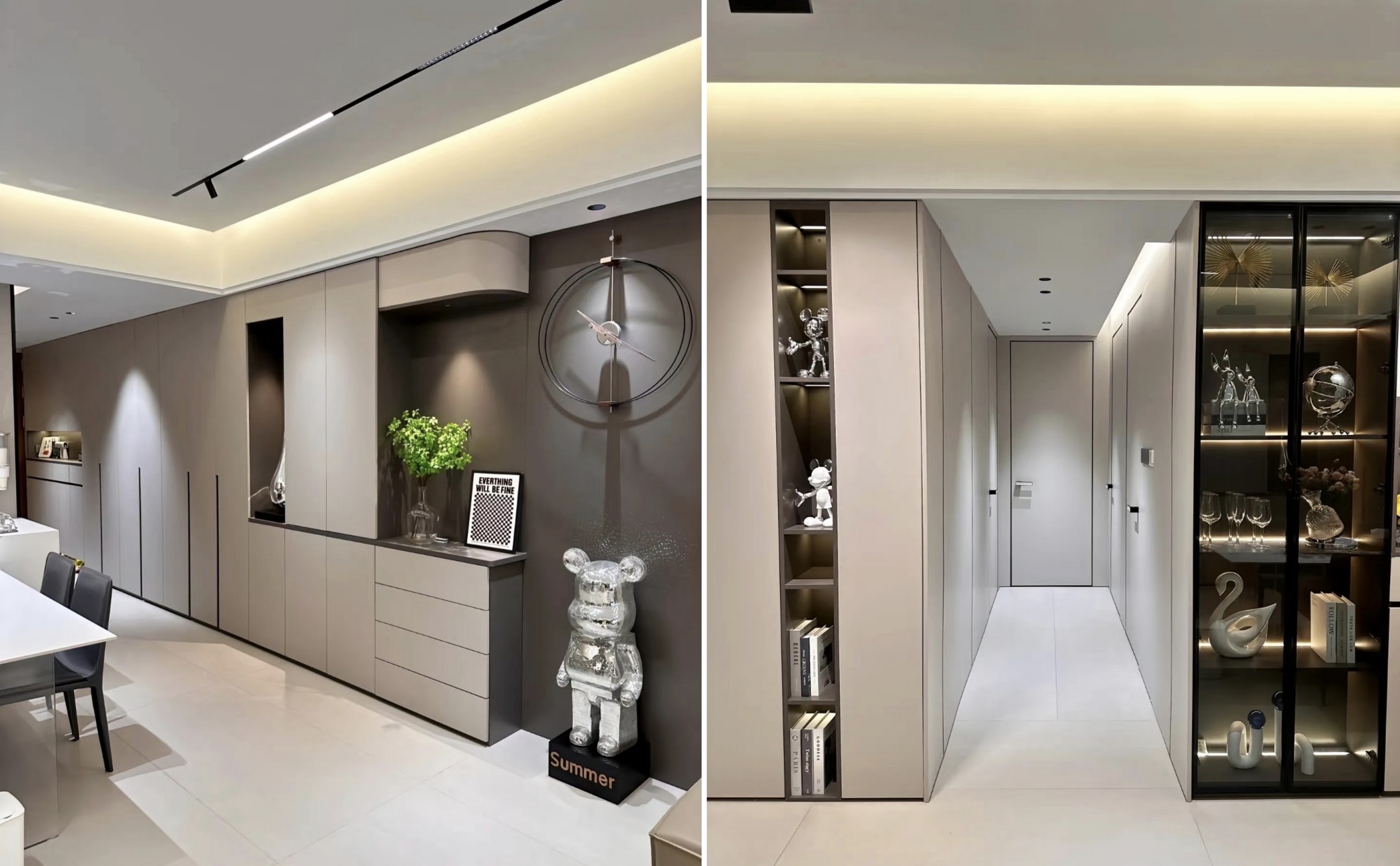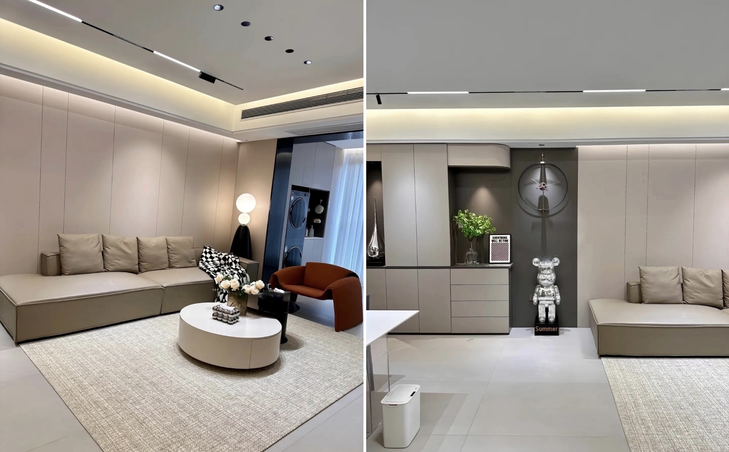1. کل خانه با 1500*750 کاشی مات خاکستری گرم ، با استفاده از همان رنگ شن و ماسه رنگی اپوکسی ، بدون هیچ گونه سنگ آستانه ، آسفالت شده است و فضای را شفاف تر می کند.